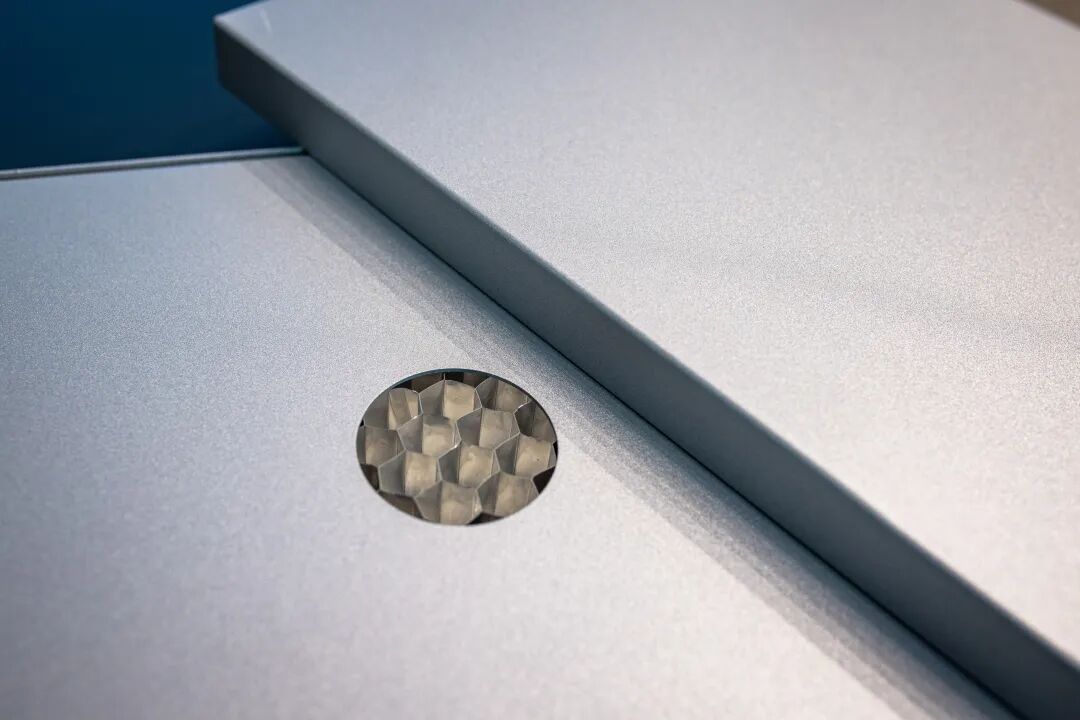 這種板材,會大大增強原本鋁板的一個結構整體性,使它不易彎曲,尺度可以做到更大,平整度也會更好,只是成本會相對來說略有提升。
