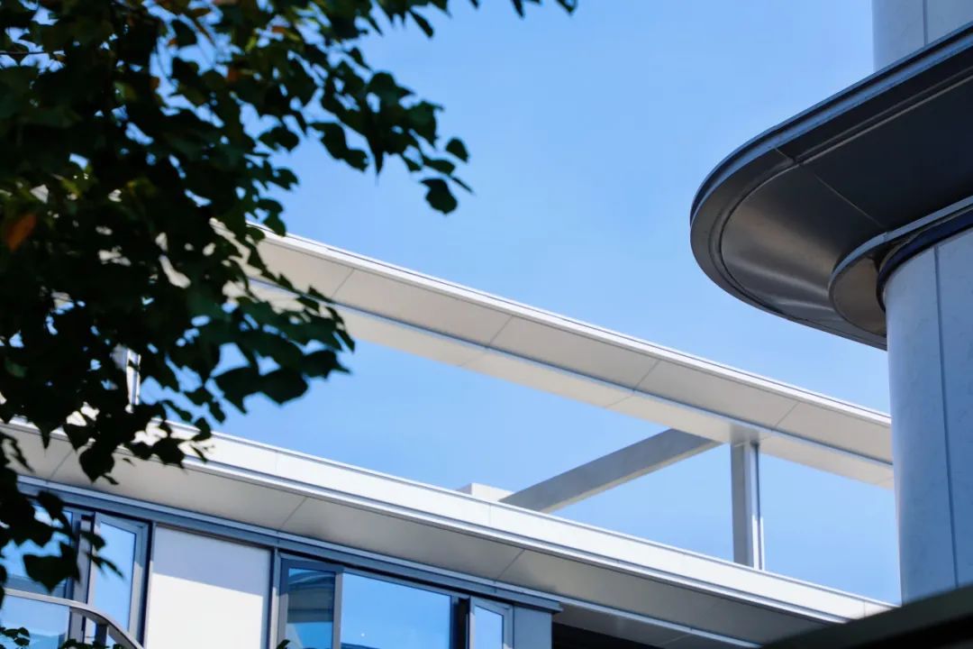 在設計的巧思下,將曲線立面的美感與自潔性達到更好的平衡,湖濱壹號·雍璟墅上表面鋁板都做了傾斜坡度排水,以確保更優的排水性與自潔性。